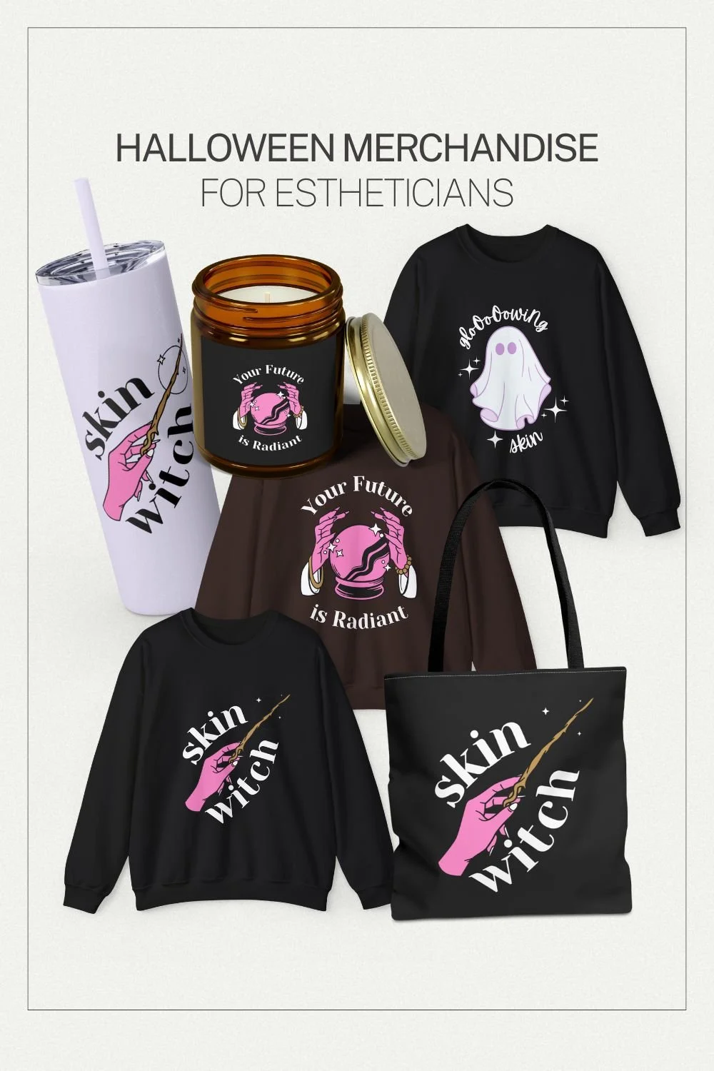 Our Halloween esthetician merch collection includes: